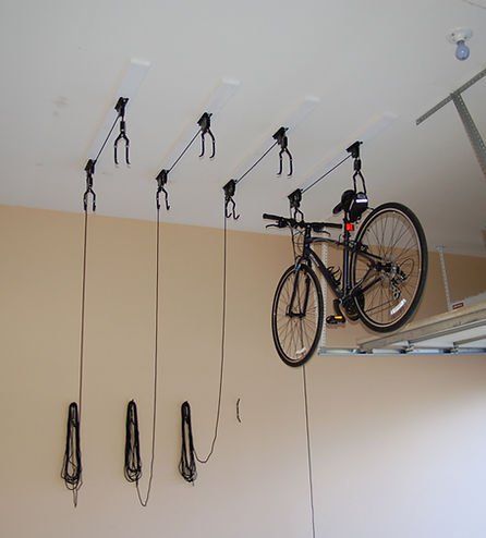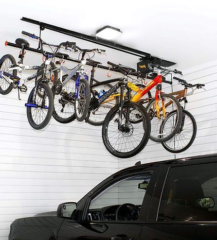 Free up valuable floor space in your garage with our wall or ceiling mounted bike racks. EncoreGarage offers a variety of functional and stylish bike storage solutions for your garage —Choose from our vertical and horizontal wall mounted bike hooks and racks, or our ceiling pulley-system and motorized bike rack solutions.